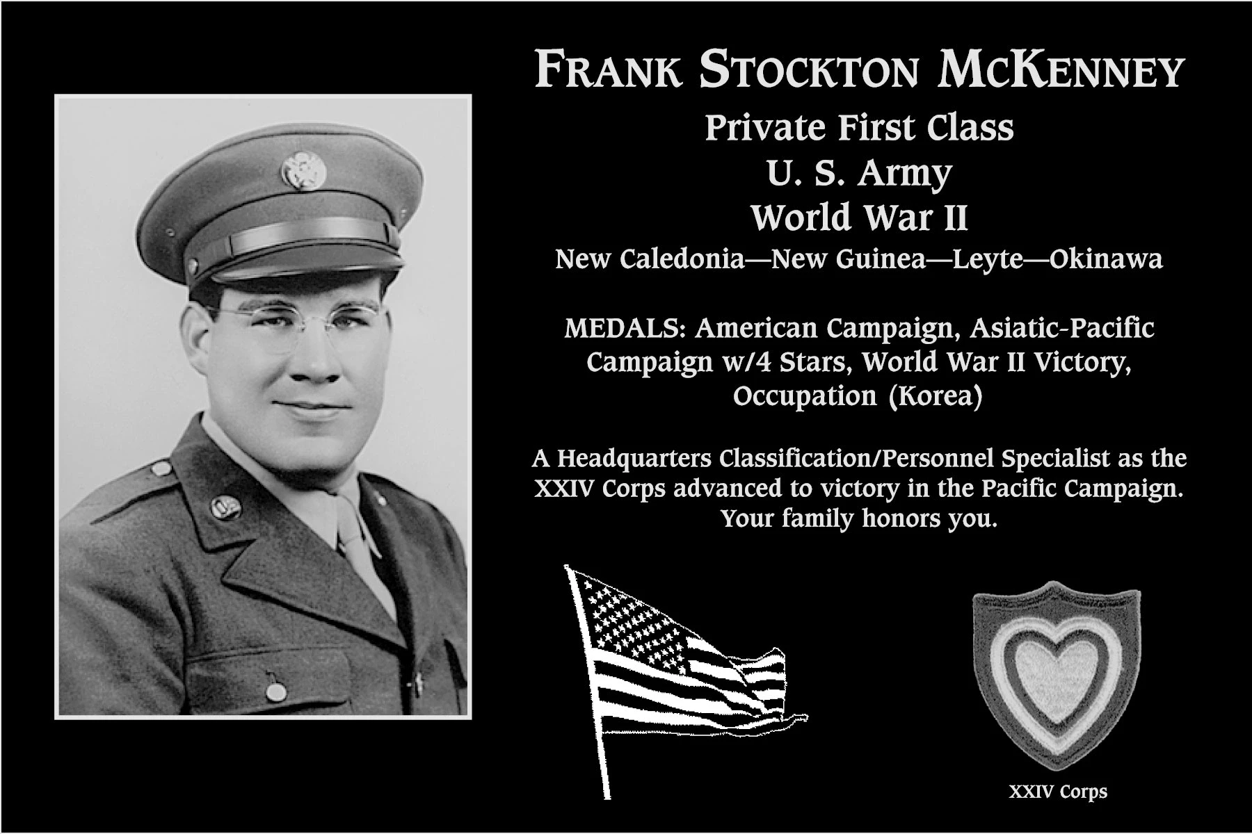 A Headquarters Classification/Personnel Specialist as the XXIV Corps advanced to victory in the Pacific Campaign. Your family honors you.